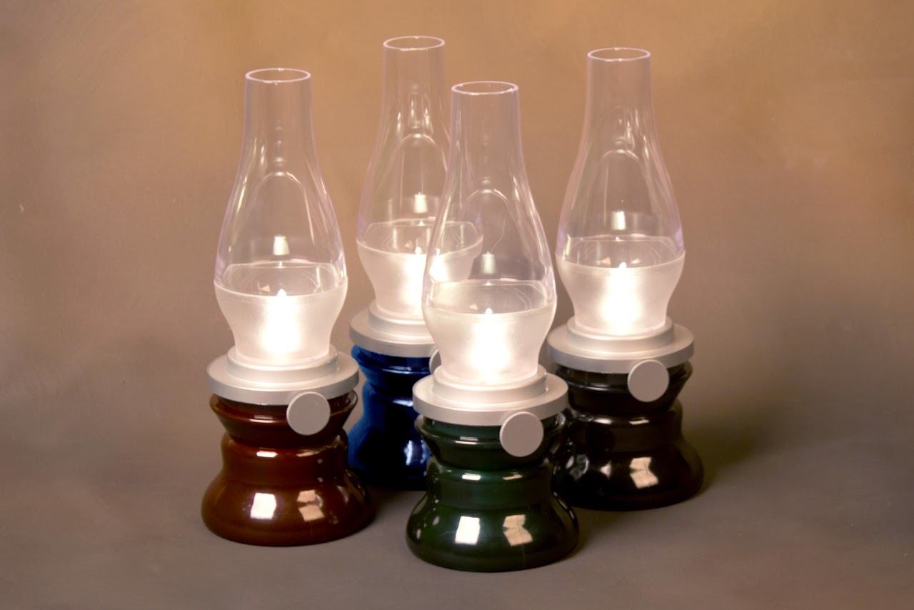The LED Blow Lamp is a lamp you can blow to turn off or on. Battery operated, (batteries not included), the glow from the LED light pulses, mimicking the appearance of a real lamp flame. Also, you can turn the knob on the side to adjust the brightness of the light, just like a real oil lamp. To turn the lamp off or on, simply blow into the top of the lamp!